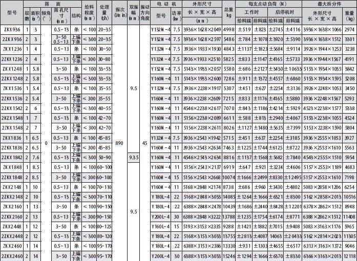 篩機型號 | 振動器 | 尺寸代號 | |||||||||||||||||