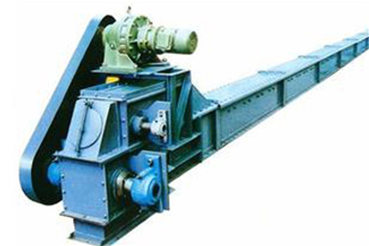 埋刮板輸送機(jī)是一種在封閉的矩形斷面的殼體內(nèi)借助與運(yùn)動(dòng)著的牽引鏈條連續(xù)輸送散狀物料的運(yùn)輸設(shè)備。傳動(dòng)采用減速電機(jī)通過(guò)鏈傳動(dòng)與頭部傳動(dòng)軸相連的形式。
